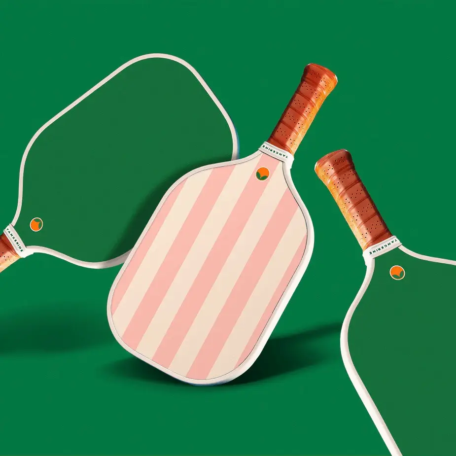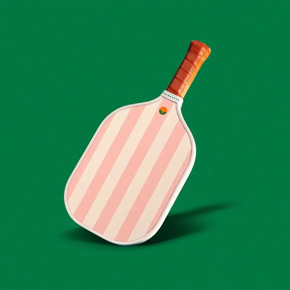 Elevate your pickleball game with the Newport R.I. Paddle in vibrant Tangerine—where performance meets style. Engineered for players at every skill level, this lightweight paddle combines a fiberglass surface for responsive shot control with a durable honeycomb core that balances power and precision. The elongated face design maximizes reach and impact, while the thoughtfully proportioned 13mm core thickness delivers consistent performance on every swing. At just 7.6 oz with a comfortable 5" handle, it's crafted for extended play without fatigue. USA Pickleball Approved and finished with a premium chestnut brown grip, this paddle brings both sophistication and substance to your court presence.